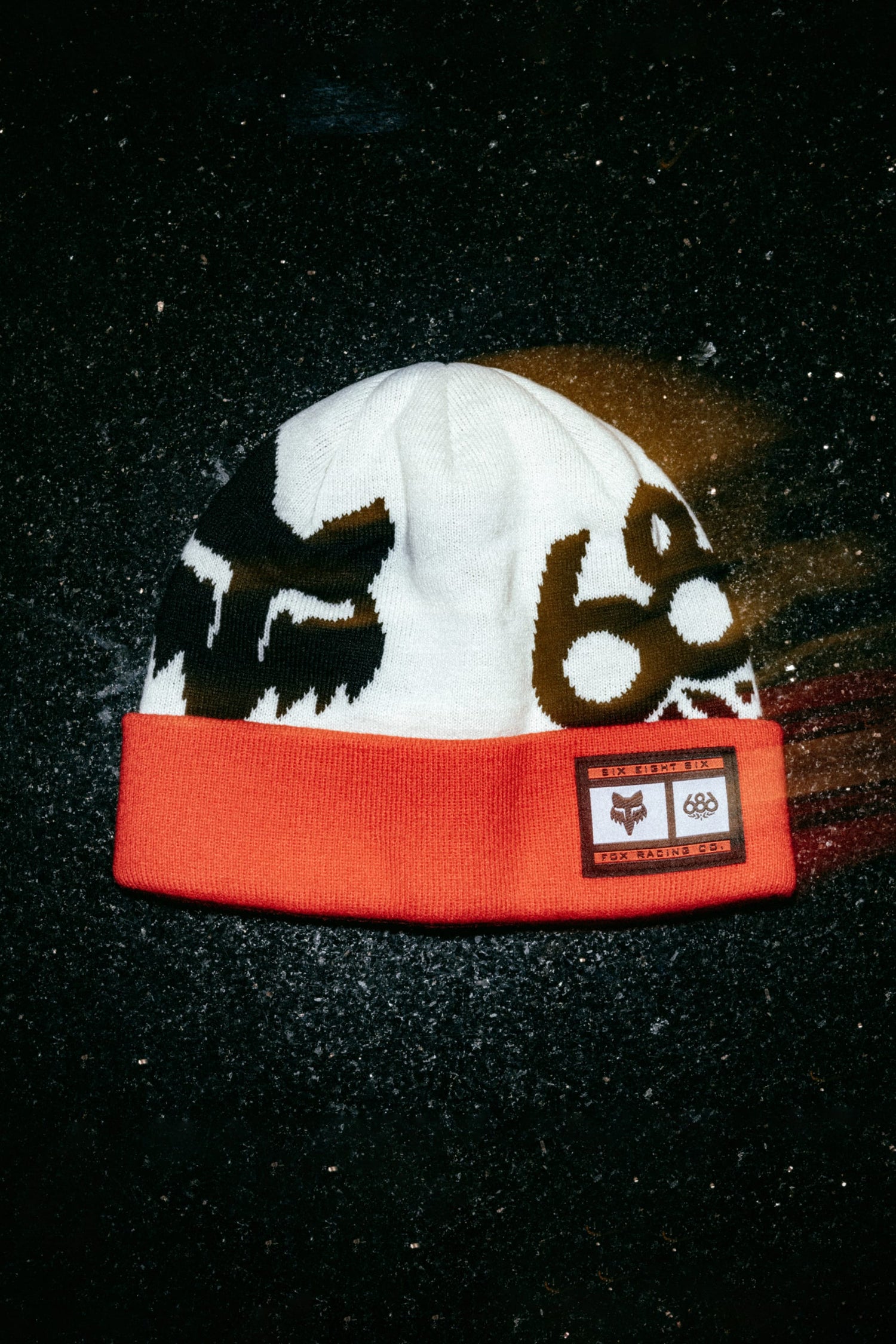 White stylized 686 logo with bold, rounded numbers and a laurel leaf graphic underneath, set against a solid black background.